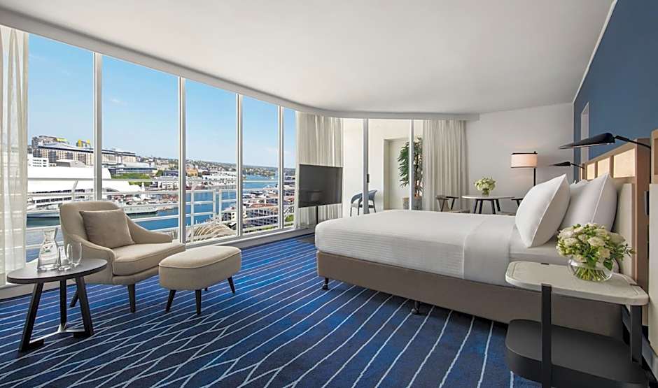 This room has a bathrobe and air conditioning located on floors 14 and 15. Relax in 28-30 sq m of space with a king bed, bathroom with walk-in shower, spacious workspace and modern, nautically inspired décor. Located on floors 14 & 15 with stunning Darling Harbor Views.